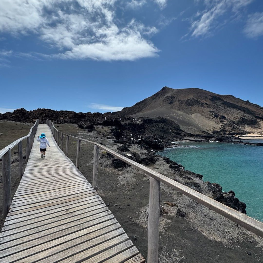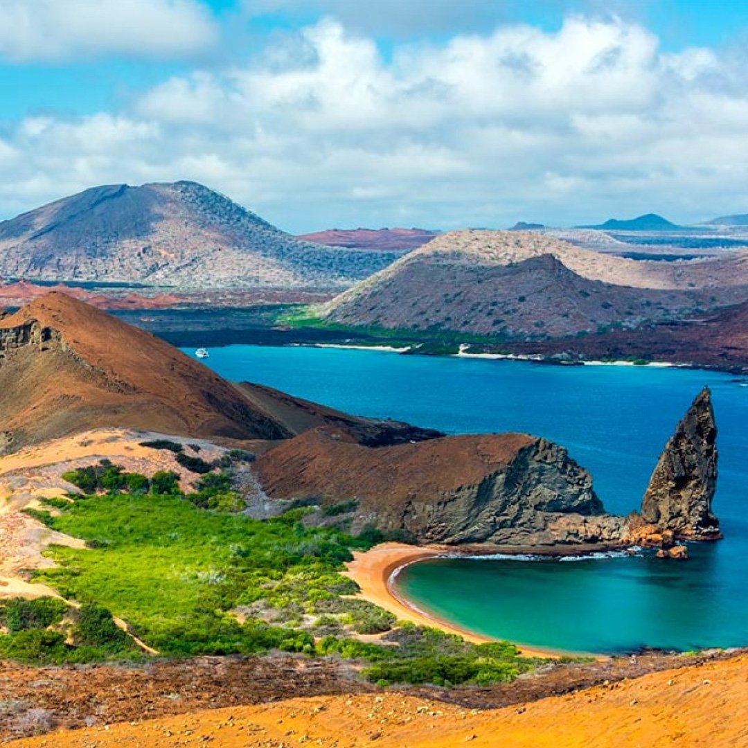 Desde el canal de Itabaca, la embarcación navegará hasta la isla Bartolomé. Esta isla es muy famosa por sus paisajes volcánicos y es un lugar excelente para los amantes de la fotografía, geología y vulcanología. Con una caminata de aproximadamente 2 horas, subiendo 365 gradas con diferentes miradores de descanso, disfrutaremos de su paisaje y podremos observar otras islas que están a su alrededor. Veremos pequeños cactus endémicos de Galápagos y tendremos la oportunidad de aprender acerca de los diferentes tipos de rocas de lava que encontramos en esta isla.
