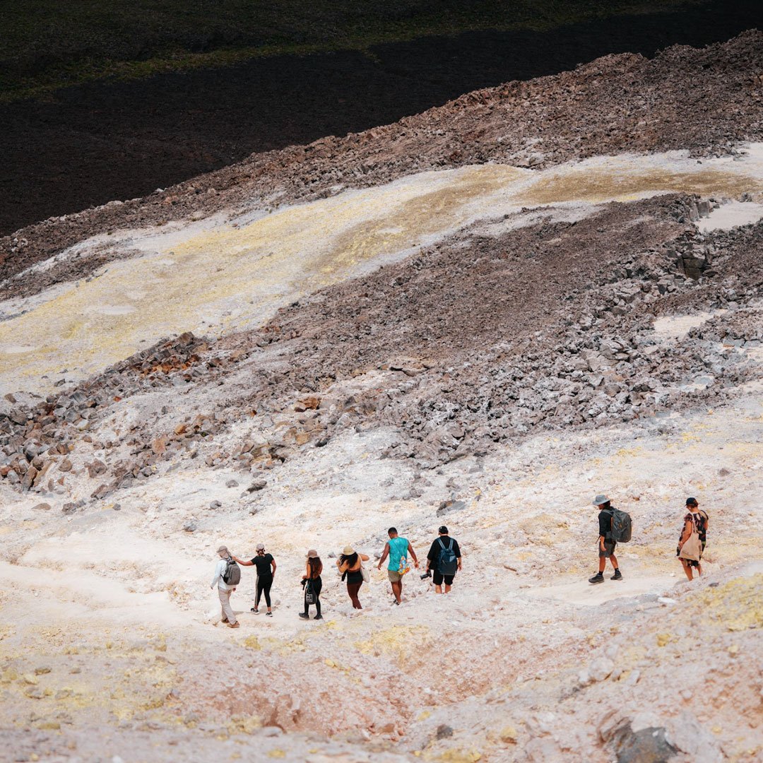 El VOLCÁN SIERRA NEGRA es el segundo cráter más grande del mundo en actividad, con un diámetro de 5 km. Desde su caldera, se puede apreciar un paisaje increíble después de una caminata de aproximadamente 3 horas. Luego, descenderemos hasta el VOLCÁN CHICO, donde encontraremos varias plataformas y formaciones de paisajes volcánicos. Allí, el guía nos dará una charla acerca del proceso de este volcán.